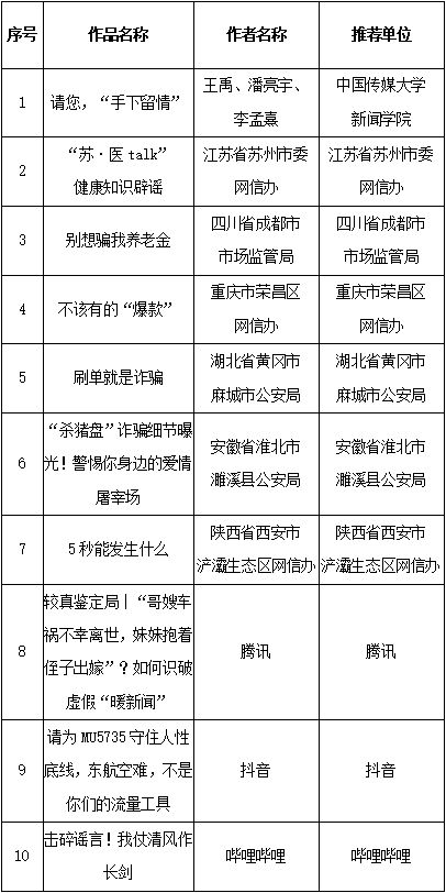 附:第五屆中國(guó)互聯(lián)網(wǎng)辟謠優(yōu)秀作品獲獎(jiǎng)名單