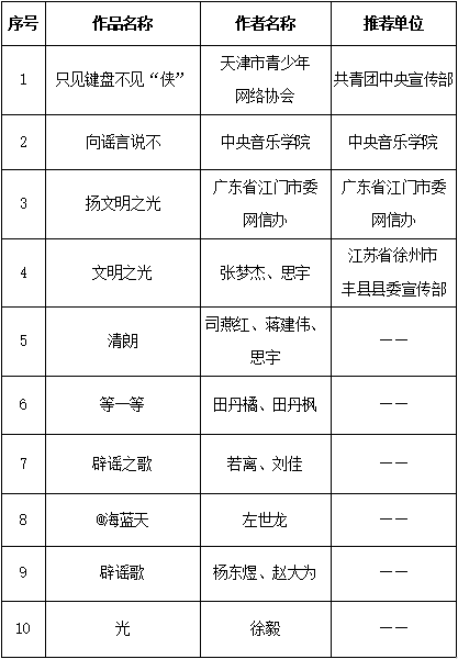 六、公益宣傳作品歌曲類(10篇)
