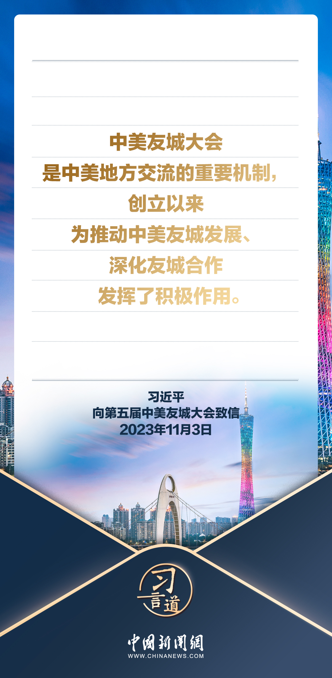 11月3日,國(guó)家主席習(xí)近平向第五屆中美友城大會(huì)致信。習(xí)近平指出——
