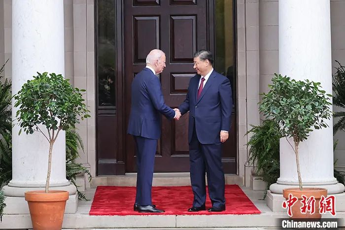 當?shù)貢r間11月15日,中國國家主席習(xí)近平在美國舊金山斐洛里莊園同美國總統(tǒng)拜登舉行中美元首會晤。中新社記者 盛佳鵬 攝