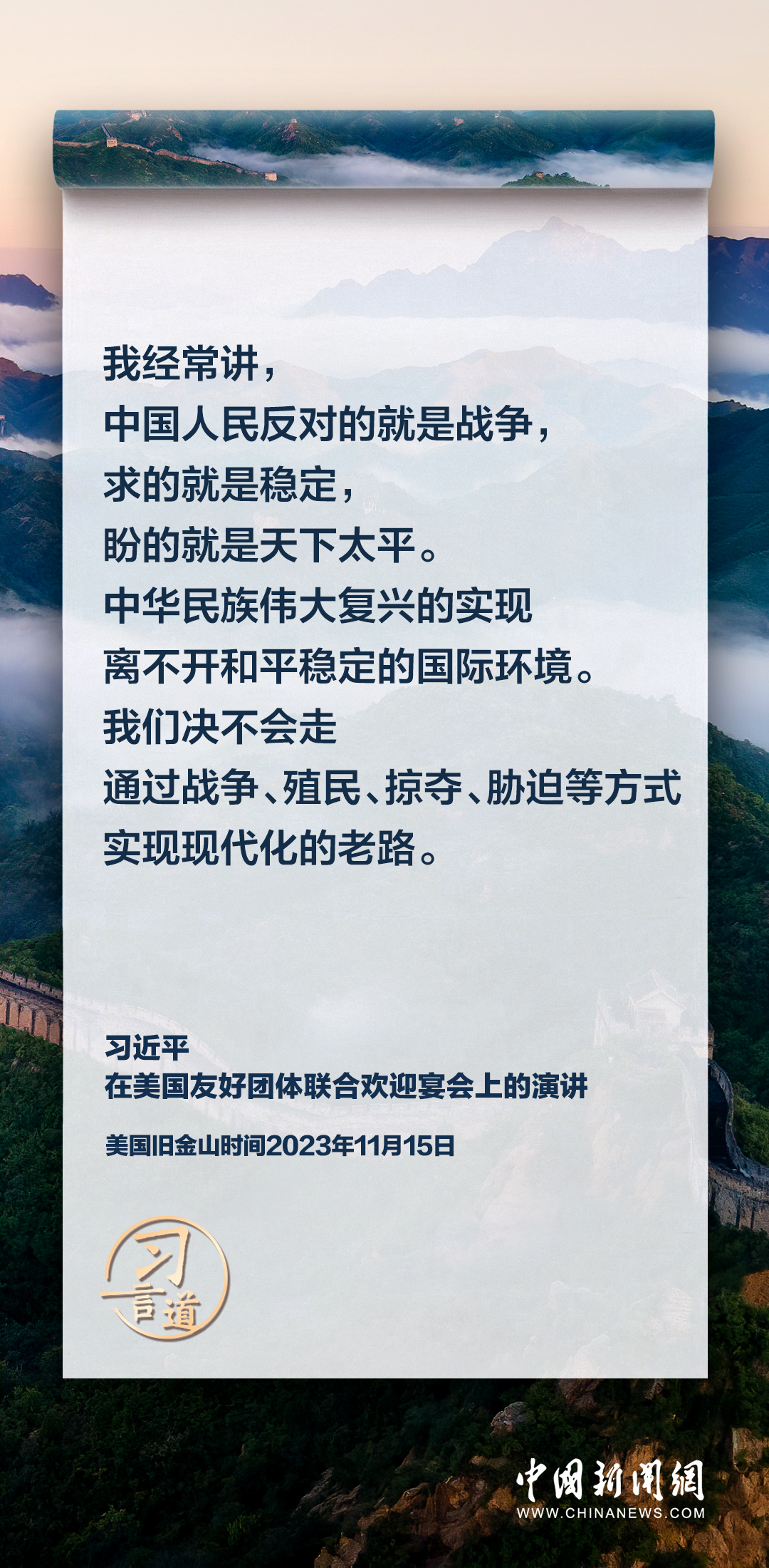 當?shù)貢r間11月15日,中國國家主席習(xí)近平在美國舊金山出席美國友好團體聯(lián)合歡迎宴會并發(fā)表演講。習(xí)近平在演講中從“我”和“我們”說起,提出中國主張、表明中國立場、展現(xiàn)大國擔(dān)當,話語擲地有聲。