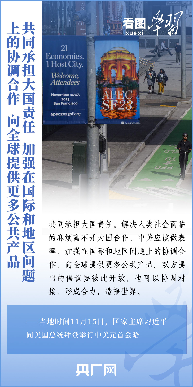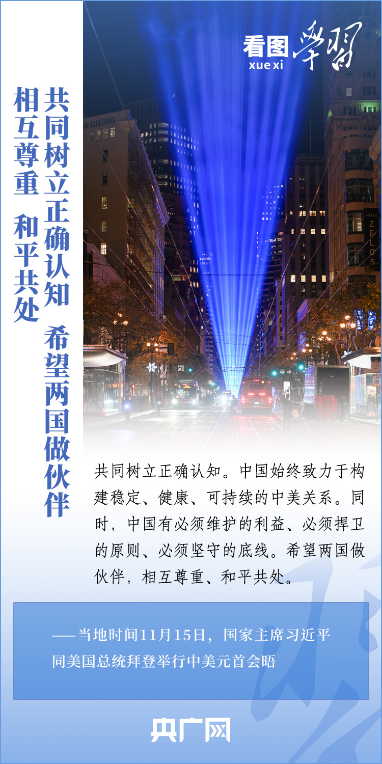 當?shù)貢r間11月15日,國家主席習近平在美國舊金山斐洛里莊園同美國總統(tǒng)拜登舉行中美元首會晤。兩國元首就事關中美關系的戰(zhàn)略性、全局性、方向性問題以及事關世界和平和發(fā)展的重大問題坦誠深入地交換了意見。習近平主席指出,大國競爭解決不了中美兩國和世界面臨的問題。這個地球容得下中美兩國。中美各自的成功是彼此的機遇。一起來學習!
