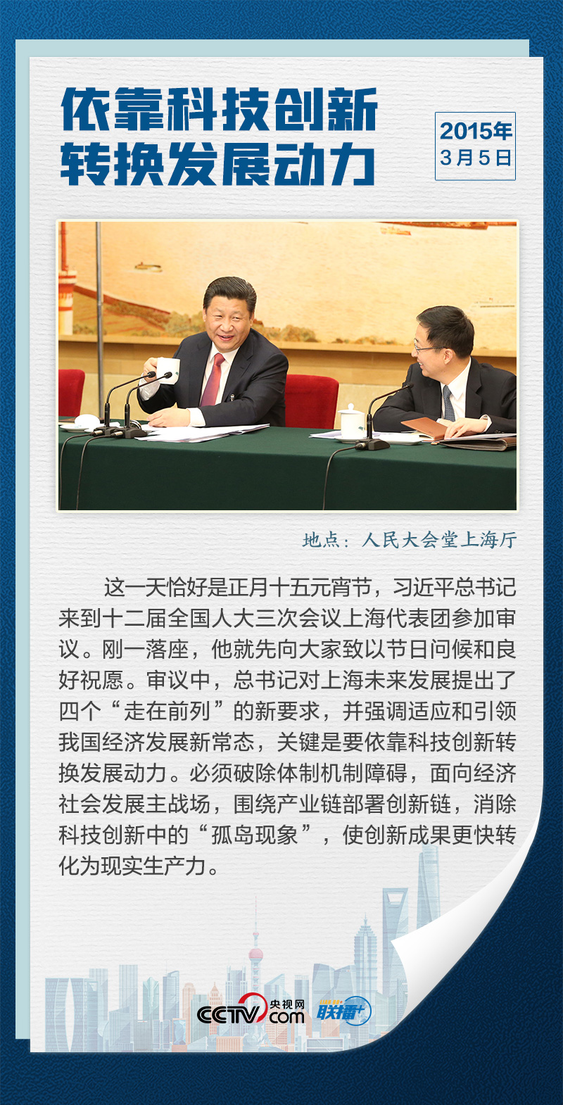 上海是我國最大的經(jīng)濟(jì)中心城市,是全國改革開放的排頭兵、創(chuàng)新發(fā)展的先行者,習(xí)近平曾多次深入上海各地區(qū)調(diào)研,多次參加全國兩會(huì)上海代表團(tuán)審議,“科技創(chuàng)新”是他反復(fù)強(qiáng)調(diào)的關(guān)鍵詞。