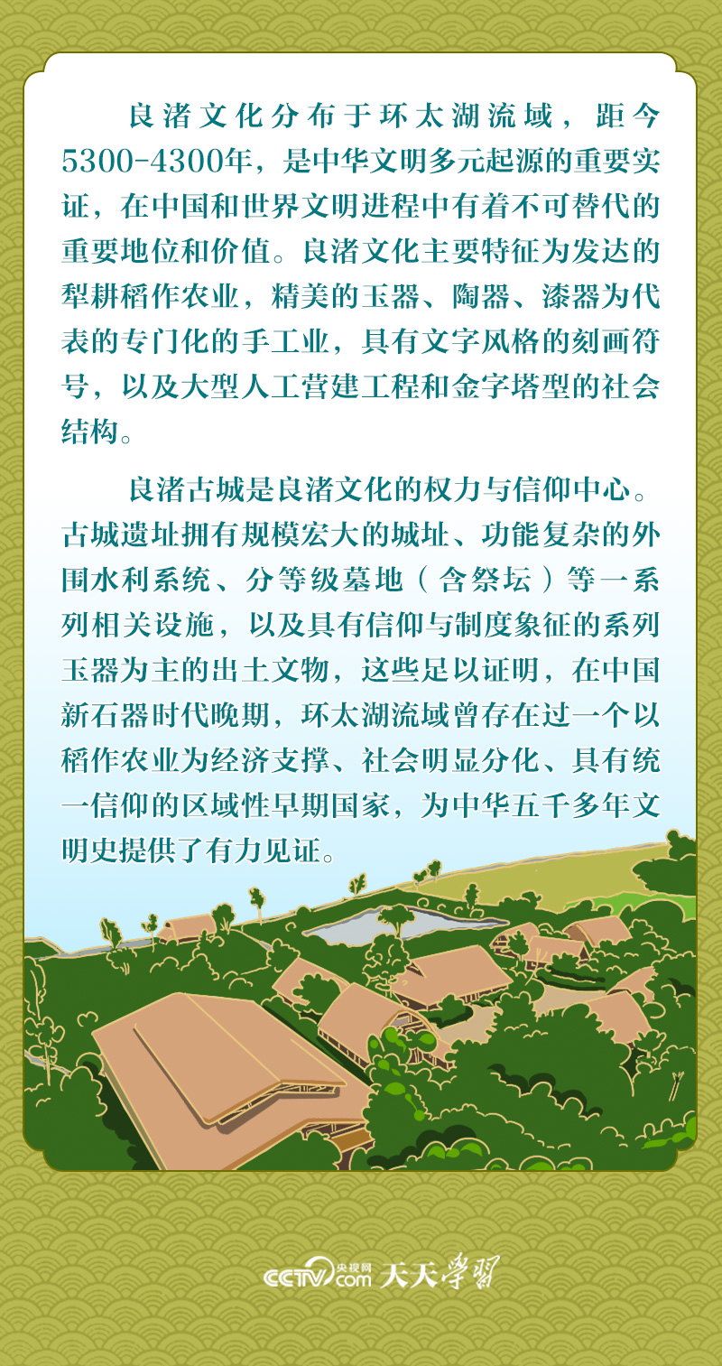 天天學習2023年12月3日,習近平主席向首屆“良渚論壇”致賀信時指出,良渚遺址是中華五千年文明史的實證,是世界文明的瑰寶。