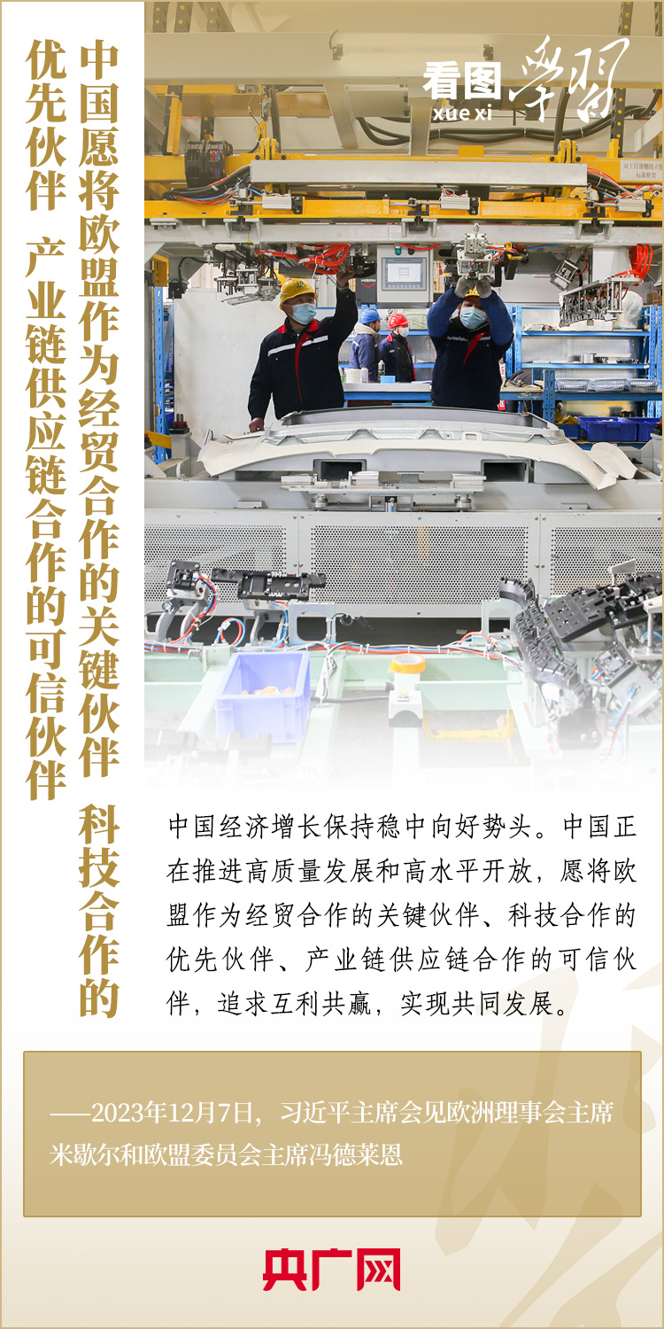 12月7日,國(guó)家主席習(xí)近平會(huì)見來華舉行第二十四次中國(guó)—?dú)W盟領(lǐng)導(dǎo)人會(huì)晤的歐洲理事會(huì)主席米歇爾和歐盟委員會(huì)主席馮德萊恩,雙方就事關(guān)中歐關(guān)系的戰(zhàn)略性問題,以及中歐各領(lǐng)域?qū)υ捄献?、雙方重點(diǎn)關(guān)切、全球治理、國(guó)際和地區(qū)熱點(diǎn)問題等深入坦誠(chéng)交換看法,并就一系列問題達(dá)成重要共識(shí)。今年是中歐建立全面戰(zhàn)略伙伴關(guān)系20周年,習(xí)主席強(qiáng)調(diào),中歐關(guān)系具有戰(zhàn)略意義和世界影響,關(guān)乎世界和平、穩(wěn)定、繁榮。一起來學(xué)習(xí)!