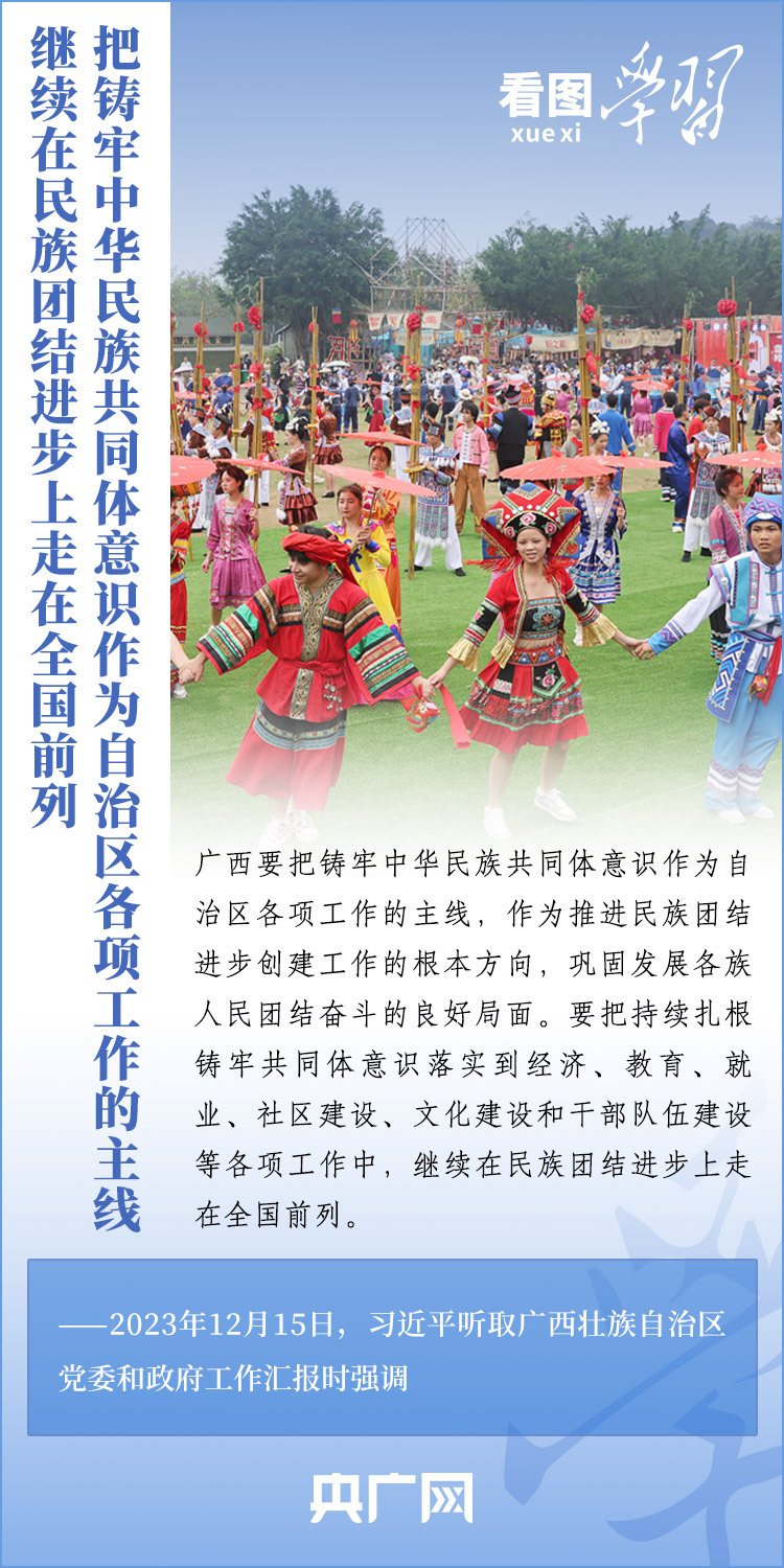 12月14日至15日,剛剛結(jié)束對(duì)越南進(jìn)行國(guó)事訪問(wèn)的習(xí)近平總書(shū)記在廣西考察并聽(tīng)取廣西壯族自治區(qū)黨委和政府工作匯報(bào)??倳?shū)記對(duì)廣西發(fā)展提出殷切希望,強(qiáng)調(diào)廣西要發(fā)揮自身優(yōu)勢(shì),以鑄牢中華民族共同體意識(shí)為主線(xiàn),解放思想、創(chuàng)新求變,向海圖強(qiáng)、開(kāi)放發(fā)展,努力在推動(dòng)邊疆民族地區(qū)高質(zhì)量發(fā)展上展現(xiàn)更大作為,奮力譜寫(xiě)中國(guó)式現(xiàn)代化廣西篇章。一起來(lái)學(xué)習(xí)!