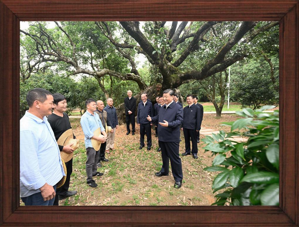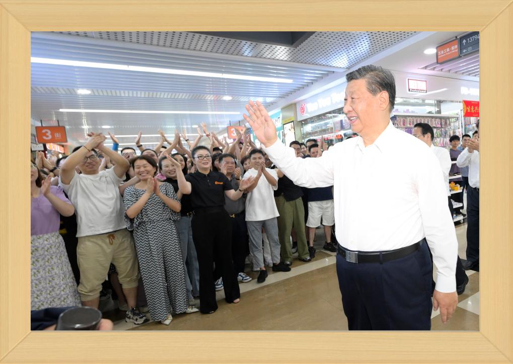 12月31日晚,國家主席習近平發(fā)表二〇二四年新年賀詞。 推近、定格、銘記,透過總書記身后書架上的一張張照片,我們記住過去,也對未來充滿信心。 不變的情懷 幾張老照片,在書架上擺放多年,人們已經(jīng)非常熟悉。 習近平同志青年時期的軍裝照,連續(xù)第3年出現(xiàn),擺放在書架醒目位置。 這令人不由得想起10年前的一段暖心對話—— 2013年11月,湖南十八洞村,村民石拔三老人見到了來此考察的習近平總書記。 “怎么稱呼您?”“我是人民的勤務員。” 歲月流轉,初心不改。從照片上的青年,到人民的勤務員,“我將無我,不負人民”的赤子情懷始終如一。 家庭是個人溫馨的港灣。習近平同志一家三口和父親習仲勛在一起、習近平同志在福州時帶女兒玩的照片,自總書記第一次發(fā)表新年賀詞以來,就一直擺在書架上。 2023年,又有幾張新的總書記家庭照片映入眼簾。 一張是習仲勛同志的單人照。 2023年是習仲勛同志誕辰110周年。習近平總書記從小深受父親影響,形容父親“像一頭老黃牛,為中國人民默默地耕耘著”,“這也激勵著我將自己的畢生精力投入到為人民群眾服務的事業(yè)中,報效養(yǎng)育我的錦繡中華和父老鄉(xiāng)親”。 同夫人彭麗媛在深圳錦繡中華景區(qū)的留影、習近平夫婦懷抱女兒的合影,也是第一次出現(xiàn)在書架上。 天下之本在家。習近平總書記指出,家庭和睦則社會安定,家庭幸福則社會祥和,家庭文明則社會文明。 修身、齊家,家好、國更好。習近平總書記率先垂范,對家人的責任、對家風的傳承、對家教的認真令人動容。 不停的步履 11張2023年拍攝的照片,留下習近平總書記過去一年治國理政的經(jīng)典瞬間。 2023年,習近平總書記共進行了16次國內(nèi)考察,出訪4次,在國內(nèi)數(shù)十次會晤到訪的各國各界人士。 將鏡頭拉遠,總書記的身影不辭萬里—— 向南,習近平總書記來到位于我國大陸最南端的廣東省湛江市徐聞縣;向北,考察中國最北端的黑龍江省漠河市北極村;向西,視頻連線守衛(wèi)祖國西大門的新疆軍區(qū)紅其拉甫邊防連執(zhí)勤哨所。 這張同紅其拉甫邊防連執(zhí)勤哨所等進行視頻通話的拼版照片,正是書架上的新照片之一。 “黃河九曲、長江奔流,總讓人心潮澎湃、豪情滿懷。”2023年,長江流經(jīng)的11個省市里,習近平總書記考察了4個;黃河沿線的9個省區(qū)里,考察了5個;大運河涉及的8個省市里,考察了5個。 北瀕長江、南臨廬山、東枕鄱湖,江西九江的中國石化九江分公司位置特殊。10月,習近平總書記來到這里時,員工們圍攏過來紛紛向總書記問好。 總書記親切地說,希望你們按照黨中央對新型工業(yè)化的部署要求,堅持綠色、智能方向,扎扎實實、奮發(fā)進取,為保障國家能源安全、推動石化工業(yè)高質(zhì)量發(fā)展作出新貢獻。 “追求卓越 勇創(chuàng)一流”——墻上的標語仿佛大家的回應。這一幕,也被相機定格。 將鏡頭推近,總書記的關切無微不至—— 這是對生產(chǎn)的關心。 萬畝甘蔗林中,習近平總書記同身著民族服裝的蔗農(nóng)走在一起,大家的笑容像甘蔗一樣甜??倳洝盀楸U蠂姨菢I(yè)安全、促進蔗農(nóng)增收致富發(fā)揮更大作用”的叮嚀深入人心。 古老荔枝樹下,總書記同現(xiàn)場技術人員親切交流,指出要著力做好“土特產(chǎn)”文章,以產(chǎn)業(yè)振興促進鄉(xiāng)村全面振興。 這是對企業(yè)的關注。 9月,習近平總書記來到浙江義烏國際商貿(mào)城考察,人們紛紛從商鋪中走出來,掌聲、問候聲、歡呼聲此起彼伏。 面對商戶、小企業(yè)主們,總書記點贊道:“義烏小商品闖出了大市場、做成了大產(chǎn)業(yè),走到這一步很了不起,每個人都是參與者、建設者、貢獻者?!?/p> 這是對人民的關懷。 2023年,華北、黃淮等地出現(xiàn)極端降雨,引發(fā)洪澇和地質(zhì)災害。 北方入冬之際,習近平總書記來到北京、河北受災較重的相關地區(qū),看望慰問受災群眾。書架上這張照片,便是總書記在北京門頭溝妙峰山鎮(zhèn)水峪嘴村考察時留下的。 一度被洪水淹沒的水峪嘴村已經(jīng)修葺一新,村民家中窗明幾凈、暖氣充足。 少年兒童的成長,習近平總書記一直牽掛在心,書架上多次出現(xiàn)總書記同孩子們在一起的場景。 2023年精選的,是一張習近平總書記在北京育英學校的照片。 看到孩子們正在學生農(nóng)場勞動,總書記關心地說:“希望同學們從‘學農(nóng)’中感受到農(nóng)作的艱辛和農(nóng)民的不易,從小養(yǎng)成熱愛勞動、珍愛糧食、尊重自然的良好習慣,為建設美麗中國作貢獻?!?/p> 不竭的力量 國徽高懸,熠熠生輝。這是一個歷史性的瞬間。 2023年3月10日,北京人民大會堂。全票當選國家主席、中央軍委主席的習近平,左手撫按《中華人民共和國憲法》,右手舉拳,面向近3000名全國人大代表,鄭重宣誓。 錚錚誓言,響徹人民大會堂,回蕩在960萬平方公里土地上,回蕩在億萬中華兒女心中。 重溫激動人心的一刻,我們信心十足、精神百倍。 信心,來自堅強的領導核心—— 書架上,擺放著習近平總書記在內(nèi)蒙古自治區(qū)巴彥淖爾市臨河區(qū)國營新華林場考察時的一張照片。 走進正在治理的沙地,總書記感慨:“ 像‘三北’防護林體系建設這樣的重大生態(tài)工程,只有在中國共產(chǎn)黨領導下才能干成。三北地區(qū)生態(tài)非常脆
