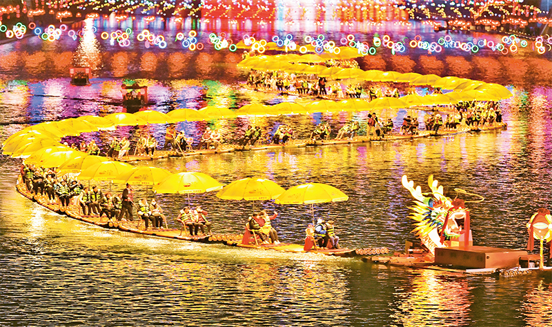 我國堅持把恢復(fù)擴大消費擺在優(yōu)先位置,相繼出臺一系列促消費政策,消費市場恢復(fù)向好,消費的基礎(chǔ)性作用更加顯著。圖為2024年2月11日,游客在湖北省恩施土家族苗族自治州宣恩縣城貢水河休閑賞夜景。 新華社發(fā) 宋文/攝