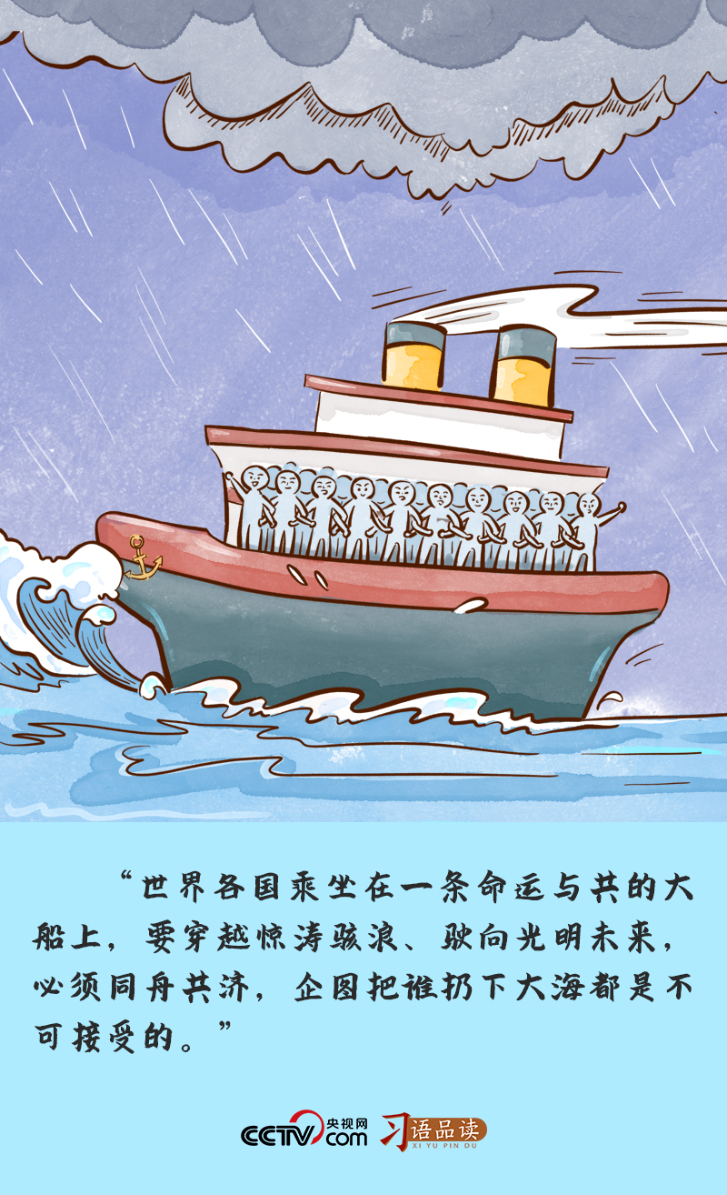 2022年1月17日,在2022年世界經(jīng)濟(jì)論壇視頻會議上,習(xí)主席深刻闡釋“小船”和“大船”的關(guān)系:“各國不是乘坐在190多條小船上,而是乘坐在一條命運(yùn)與共的大船上。小船經(jīng)不起風(fēng)浪,巨艦才能頂住驚濤駭浪?!?/p>