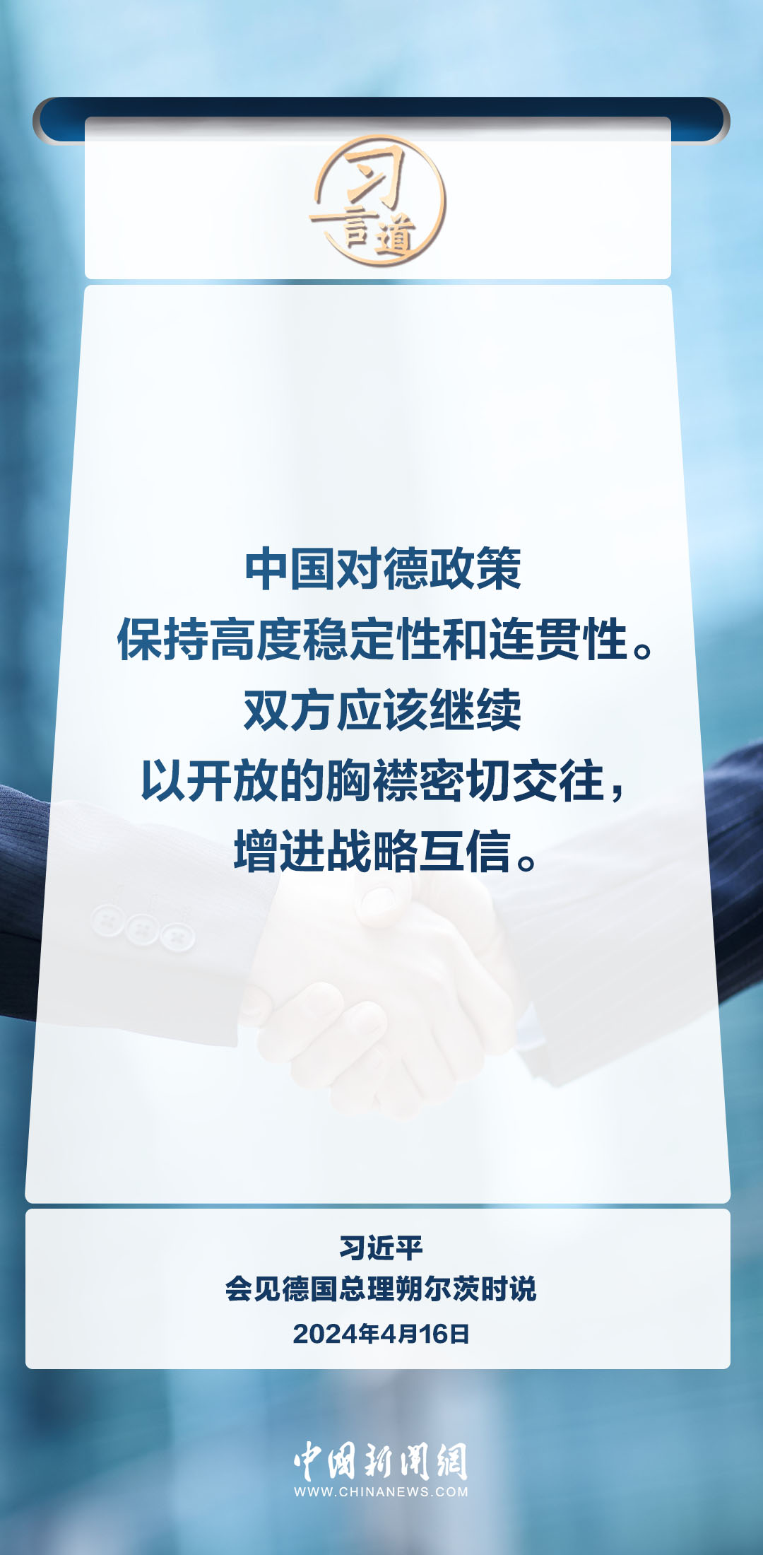4月16日上午,國家主席習近平在北京釣魚臺國賓館會見德國總理朔爾茨。習近平指出——