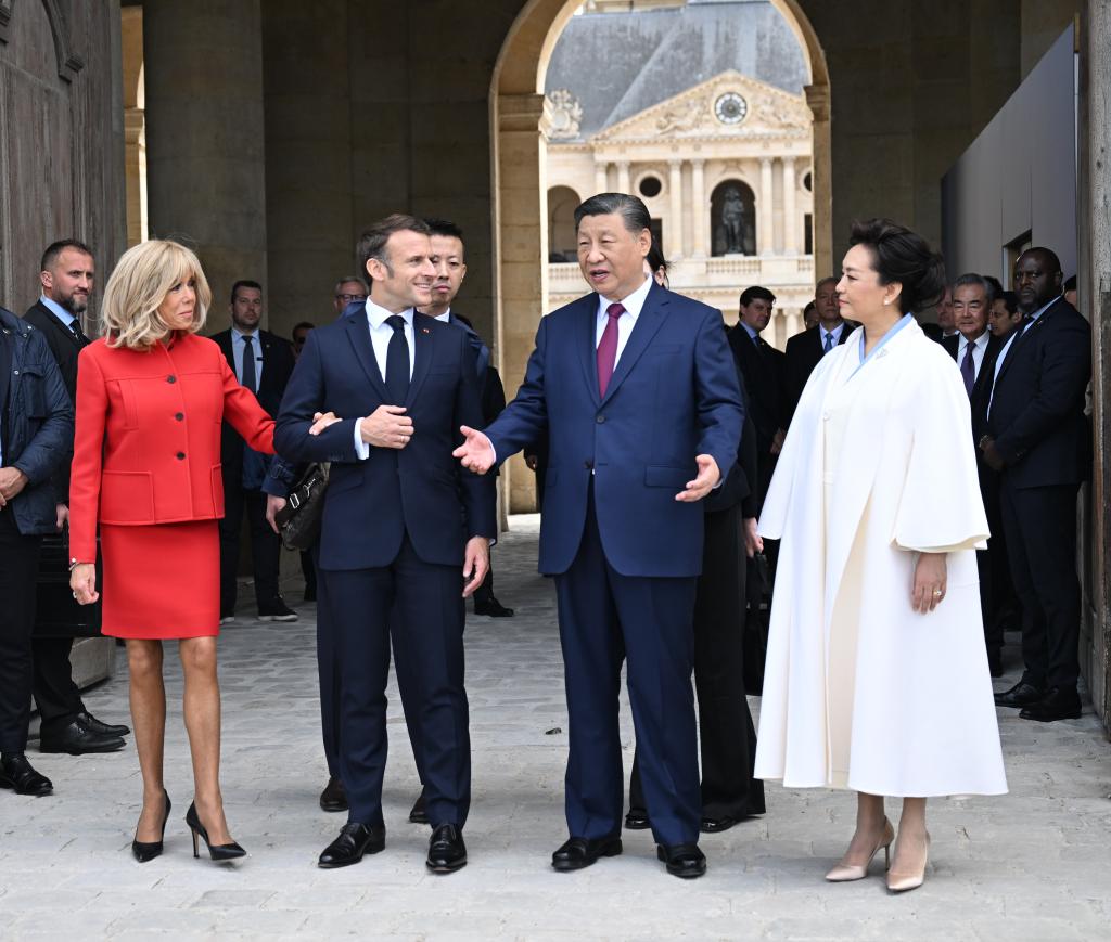 ??當(dāng)天下午,習(xí)近平在巴黎出席馬克龍舉行的隆重盛大歡迎儀式。兩國(guó)元首檢閱法蘭西共和國(guó)衛(wèi)隊(duì)和陸??杖妰x仗隊(duì),并觀看分列式。