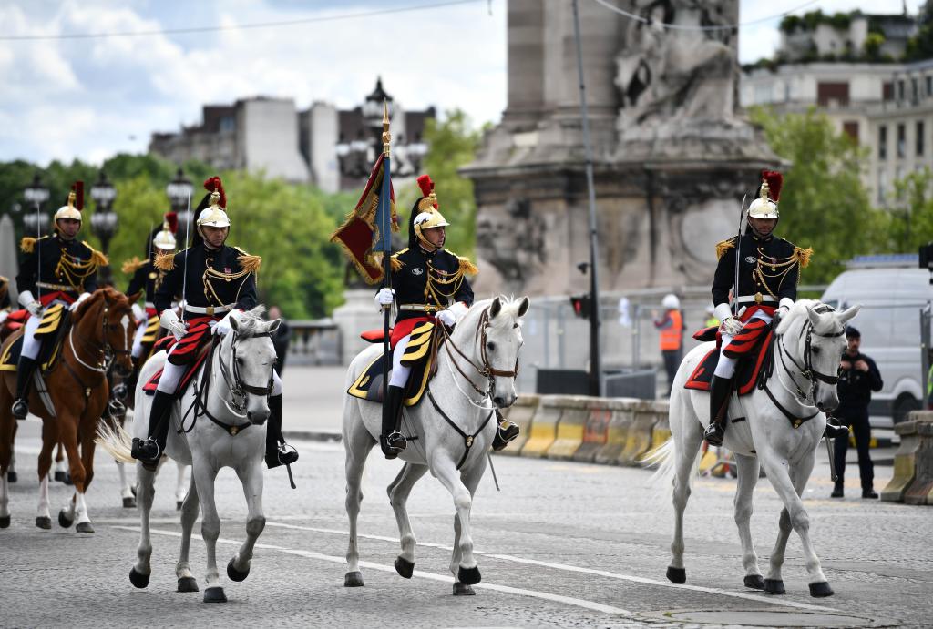 ??歡迎儀式后,習(xí)近平和夫人彭麗媛在共和國(guó)衛(wèi)隊(duì)148名騎兵組成的禮兵馬隊(duì)和摩托車隊(duì)護(hù)衛(wèi)下,乘車前往愛麗舍宮。
