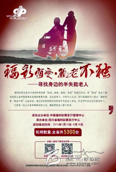 為踐行福利彩票“扶老、助殘、救孤、濟困”宗旨,州福彩中心將在全州范圍內(nèi)開展“福彩有愛·孤老不獨”大型慈善公益活動,特向我州貧困半失能老人免費贈送福彩愛心輪椅。