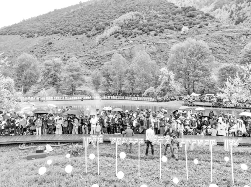 活動現(xiàn)場,悠揚的樂聲自林間傳來,沿著步道往深處走去,一場特別的演奏會正在進行,枝頭海棠盛放,樹下游人如織,鋼琴、大提琴、笛子等各色樂器奏出的曲調(diào)在貢嘎海棠的映襯下更顯別樣風味。來自西安的韓先生細細聆聽木雅傳統(tǒng)非遺口弦的演奏后不禁感嘆道,“太美了!這個活動將音樂與貢嘎海棠花海巧妙融合,讓我感受到一種別樣的人與自然共生的和諧。”