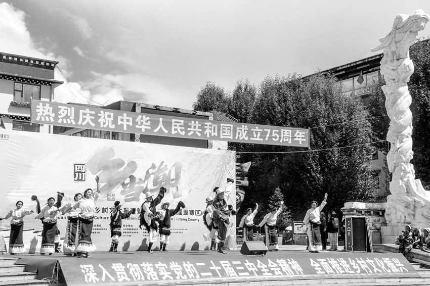 “沒想到平時(shí)在村里跳的鍋莊,今天受到了這么多人的歡迎和喜愛,給了我們很大的鼓舞,今后我們還要繼續(xù)跳好鍋莊,并一代代傳承下去。”莫壩鄉(xiāng)下莫壩村的村民仁稱多吉高興地說?!斑@是我畫的家鄉(xiāng),名叫《呷洼中秋夜》?!边韧萼l(xiāng)日里新村的村民貢布介紹了自己的油畫作品,畫家出自鄉(xiāng)野,畫風(fēng)飽含鄉(xiāng)韻,引來一片嘖嘖稱奇。競(jìng)演大賽上,22個(gè)鄉(xiāng)鎮(zhèn)立足自身實(shí)際,以各具特色的敘述,為觀眾全景描述了地方文化、特色物產(chǎn)、自然景觀、產(chǎn)業(yè)經(jīng)濟(jì)、新風(fēng)新貌等,今日理塘鄉(xiāng)村,處處好風(fēng)光。