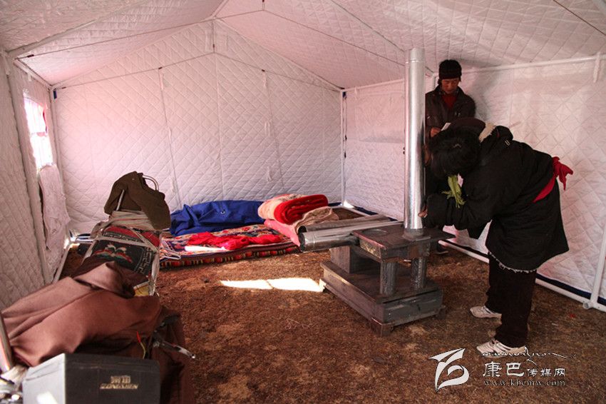 村民朗樂(lè)帶著10歲的兒子益德尼瑪正在忙著安裝分配給他們的取暖鋼爐,看見(jiàn)筆者串門(mén)便笑著說(shuō):“我們?cè)瓉?lái)的是單帳篷,上前天剛剛給換了棉帳篷,今天又發(fā)了取暖用鋼爐,這個(gè)冬天完全可以平安渡過(guò)了。”
