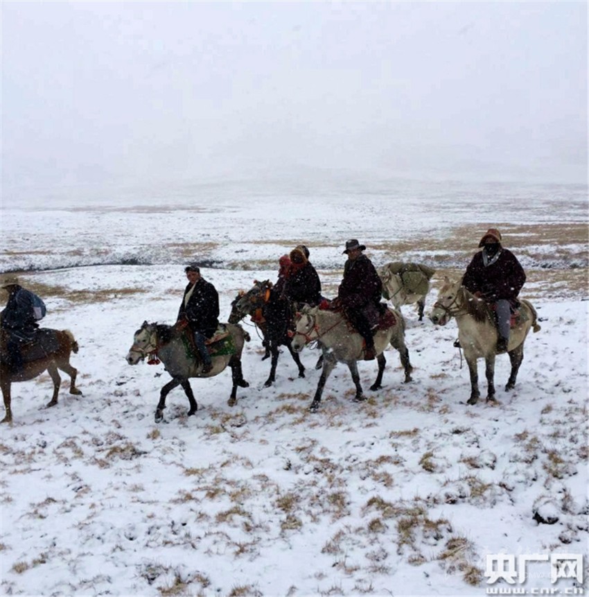 馬背宣講隊(duì)行進(jìn)在風(fēng)雪宣講路上。