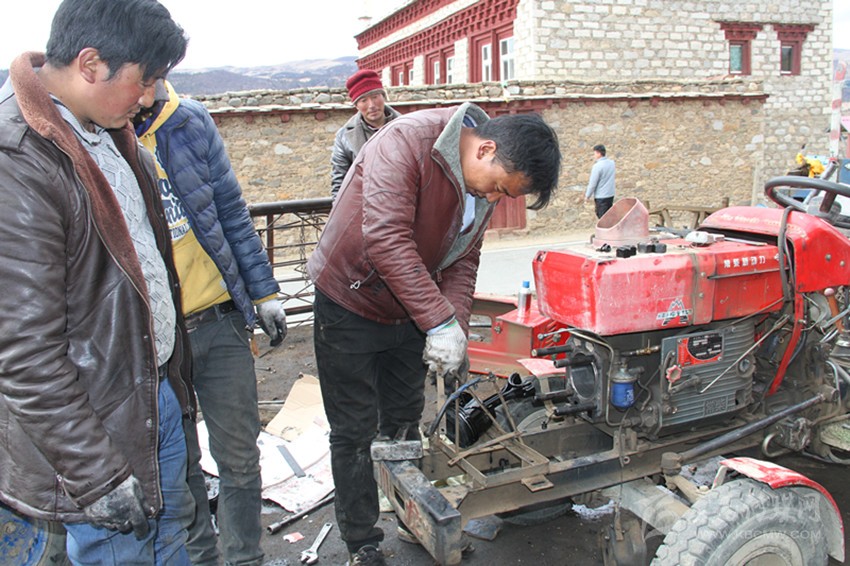 2月21日,遠(yuǎn)離理塘縣城83公里、海拔3560米的下木拉鄉(xiāng)細(xì)忠村,天氣還有些寒冷,扎西維修店店長壓瑪帶領(lǐng)徒弟正忙著為村民維修拖拉機(jī),因?yàn)榇焊诩吹⒄`不得。