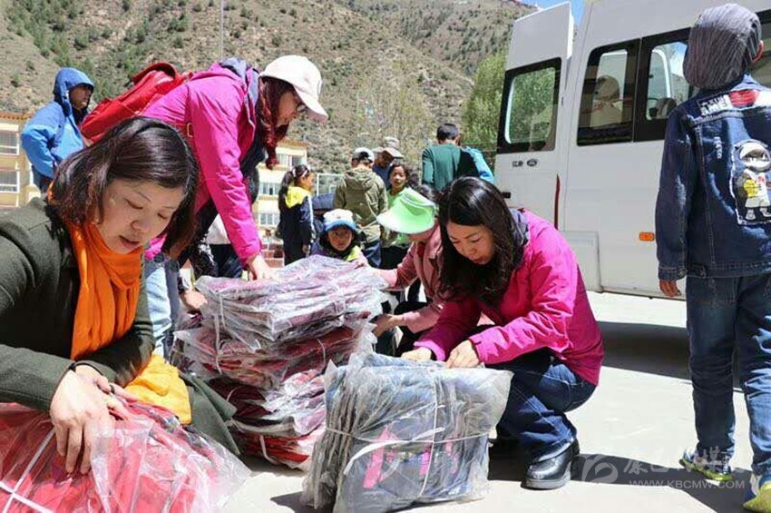 援藏隊(duì)員分發(fā)助學(xué)物資。