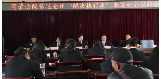 孫菊花原文傳達了州法院吳良軍院長、羅云局長等領(lǐng)導在部署會議上的講話內(nèi)容,結(jié)合本院情況分別從準確把握各項短板和不足、抓好執(zhí)法辦案要務(wù)、實現(xiàn)案件分類管理、分段辦理等幾方面向全院干警解讀了會議精神。孫院長對我院下一步的執(zhí)行攻堅工作提出四點要求:一是全院干警要統(tǒng)一思想,通力協(xié)作,舉全院之力不折不扣完成執(zhí)行工作任務(wù);二是各部門要加強協(xié)調(diào)配合、步調(diào)一致,樹立全院一盤棋的思想,在規(guī)范常規(guī)動作的基礎(chǔ)上繼續(xù)加大執(zhí)行強制措施的威懾力;三是執(zhí)行局必須明確目標,緊盯兩個90%工作任務(wù),各辦案小組根據(jù)案件具體情況逐案制定方案個個擊破;四是全力爭取縣委政府的支持和社會各界的理解配合,統(tǒng)一部署,形成多部門、多領(lǐng)域、多手段聯(lián)動執(zhí)行的強大合力。