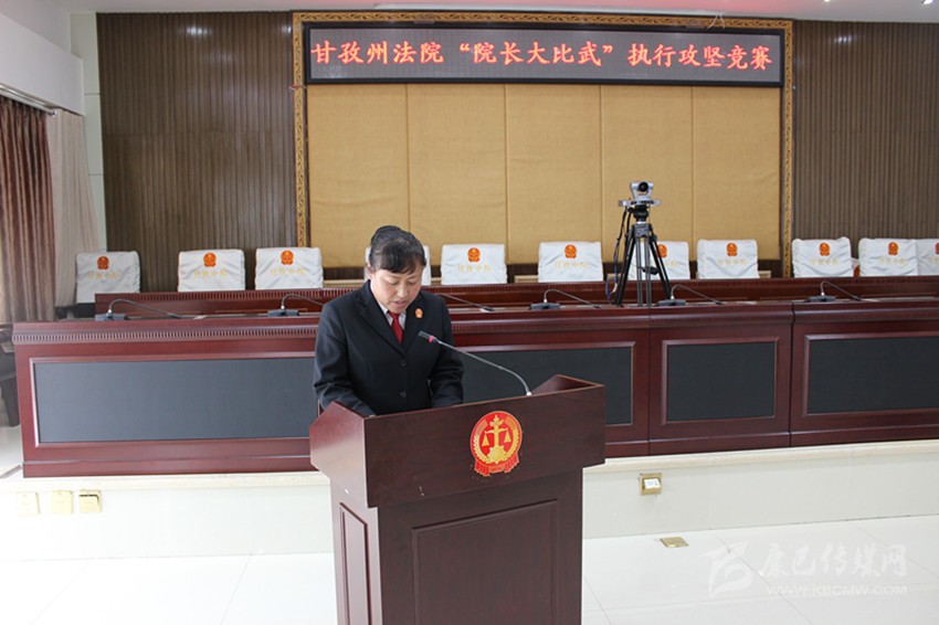 6月8日,全州基層法院“院長大比武”執(zhí)行攻堅(jiān)競賽在州中級(jí)人民法院舉行,瀘定縣人民法院院長鐘天蓉在競賽階段
