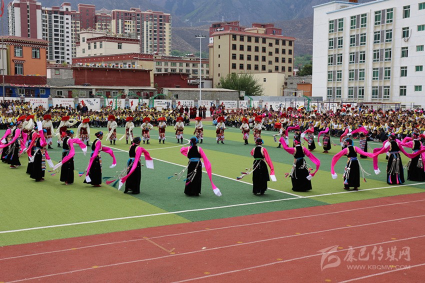 巴塘縣中學(xué)學(xué)生合唱《我和我的祖國》。