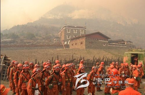 爐霍專(zhuān)業(yè)森林撲火隊(duì)隊(duì)長(zhǎng)阿代介紹說(shuō):“接到命令后,我們立刻組織34名撲火隊(duì)員,緊急出動(dòng)四輛森林消防車(chē)和一輛行動(dòng)車(chē)趕赴火場(chǎng)。因火場(chǎng)山高路陡,撲火器材只能用人工的方式運(yùn)送到一線,70公斤的器材兩個(gè)人扛,15斤一盤(pán)的水袋一個(gè)人一次背兩三盤(pán),有的地方需要涉過(guò)刺骨冰冷的河水到達(dá)一線,許多隊(duì)員都出現(xiàn)了體力透支的現(xiàn)象,但沒(méi)有一個(gè)人叫苦喊累。”