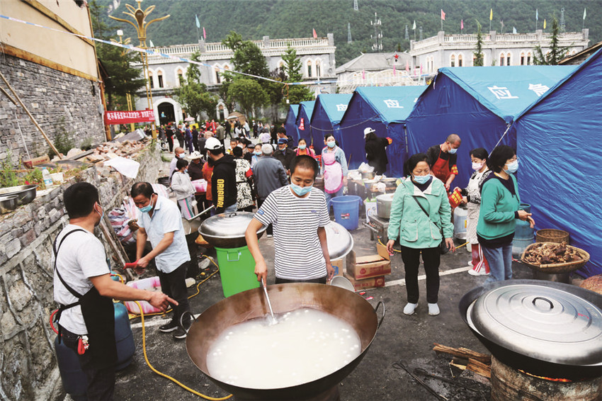 這是來之不易的“百家飯”,在“9·5”瀘定縣6.8級地震發(fā)生后,受災(zāi)村民你拿一袋米、我提一筐菜,你出一份力、我捐一點錢,齊心協(xié)力、共渡難關(guān),520人共煮一鍋“團(tuán)結(jié)飯”。