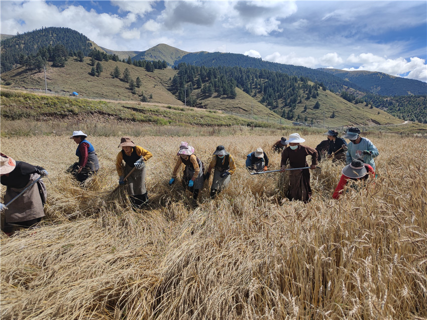 “增德村距鄉(xiāng)衛(wèi)生院差不多有6公里左右,衛(wèi)生院醫(yī)護(hù)人員每天到秋收現(xiàn)場(chǎng)對(duì)群眾進(jìn)行核酸檢測(cè),解決了秋收期間群眾兩頭跑的實(shí)際問(wèn)題,現(xiàn)在鄉(xiāng)干部又來(lái)幫助我們秋收,今年豐收應(yīng)該沒(méi)有問(wèn)題?!痹麓妩h支部書(shū)記格桑甲措說(shuō)。