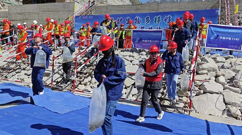 “今年放流的魚苗種類繁多,有四川裂腹魚、短須裂腹魚、長(zhǎng)絲裂腹魚、裸腹葉須魚、軟刺裸裂尻等,其中,裸腹葉須魚為中國(guó)瀕危動(dòng)物紅皮書‘易?!~類,四川裂腹魚為四川省重點(diǎn)保護(hù)魚類?!比A電金上葉巴灘分公司負(fù)責(zé)人說(shuō),為減少工程建設(shè)對(duì)魚類及水生生物的影響,公司建立了萬(wàn)里長(zhǎng)江第一級(jí)魚類增殖放流站,是國(guó)內(nèi)首個(gè)截流當(dāng)年開展增殖放流的水電站,自2019年首次舉辦試驗(yàn)性增殖放流活動(dòng)以來(lái),累計(jì)放流106萬(wàn)尾特有珍稀魚苗。同時(shí)為進(jìn)一步推進(jìn)金沙江魚類種群恢復(fù)、水域生態(tài)環(huán)境的改善,公司還追加了1.7億元的環(huán)保投資,增設(shè)了一臺(tái)生態(tài)備用機(jī)組,提高運(yùn)行期生態(tài)下泄流量的安全度和保證率。聯(lián)合華中農(nóng)業(yè)大學(xué)開展黃石爬鮡、姚氏高原鰍等遠(yuǎn)期放流魚種人工繁殖技術(shù)研究,采取分層取水技術(shù),有效改善水庫(kù)下泄水溫,為魚類繁殖生存提供適宜條件。