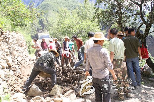 丹巴縣岳扎鄉(xiāng)納頂通村公路全長里程13公里,惠及上、中、下納頂和斯交四村319戶1196人,因前期連續(xù)強降雨,納頂通村公路主干道垮塌嚴重,交通一度被阻斷,嚴重影響了村民的出行安全以及農(nóng)副產(chǎn)品外運。為盡快搶通公路,多名干部群眾在水電企業(yè)裝載機的全程協(xié)助下,經(jīng)過近10個小時的連續(xù)奮戰(zhàn),終于完成了通村公路的清障工作。圖為村民們在公路上清障。 (卿莉 攝影報道)