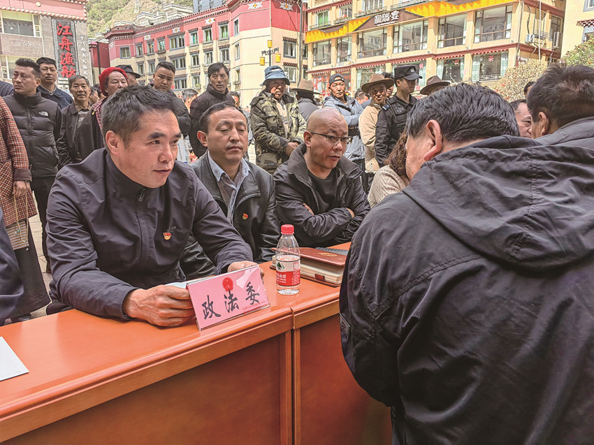 政法委員統(tǒng)籌調(diào)度,充分發(fā)揮鄉(xiāng)(鎮(zhèn))政法委員統(tǒng)籌作用,搭建以網(wǎng)格員、人民調(diào)解員、綜治員等的基層聯(lián)絡(luò)群,協(xié)同法庭法官、駐鄉(xiāng)檢察官、轄區(qū)民輔警等進村組(社區(qū))、進學校、進寺廟、進工地、進蟲草山等地,常態(tài)化摸排掌握社情民意,確保及時發(fā)現(xiàn)矛盾隱患,打通基層社會治理的堵點和難點,助力實現(xiàn)“小事不出村、大事不出鎮(zhèn)、矛盾不上交”目標。