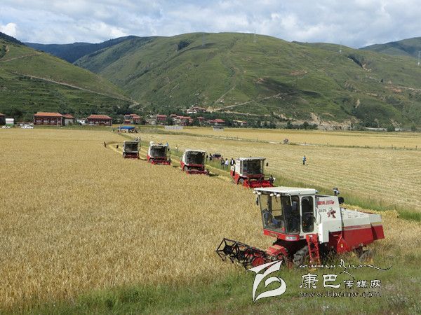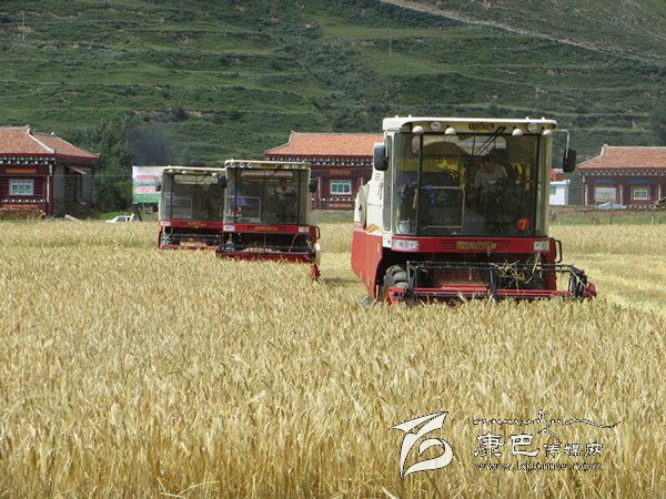 本網(wǎng)訊(胡筱紅 龍正芳 文/圖) 高原的八月是絢麗多彩的時節(jié),是糧食收獲的季節(jié)。爐霍縣300畝全程機(jī)械化青稞作業(yè)示范片項(xiàng)目機(jī)收工作于8月20日正式啟動,共出動大型聯(lián)合收割機(jī)5臺、拖拉機(jī)5臺同時作業(yè),正常情況下一臺收割機(jī)一天可以收割65至70畝,青稞示范片不出5天就能完成收割。對比以往的種植和收獲方式,全程機(jī)械化作業(yè)從播種到收獲帶來的社會效益及經(jīng)濟(jì)效益都遠(yuǎn)遠(yuǎn)高于傳統(tǒng)種植方式。