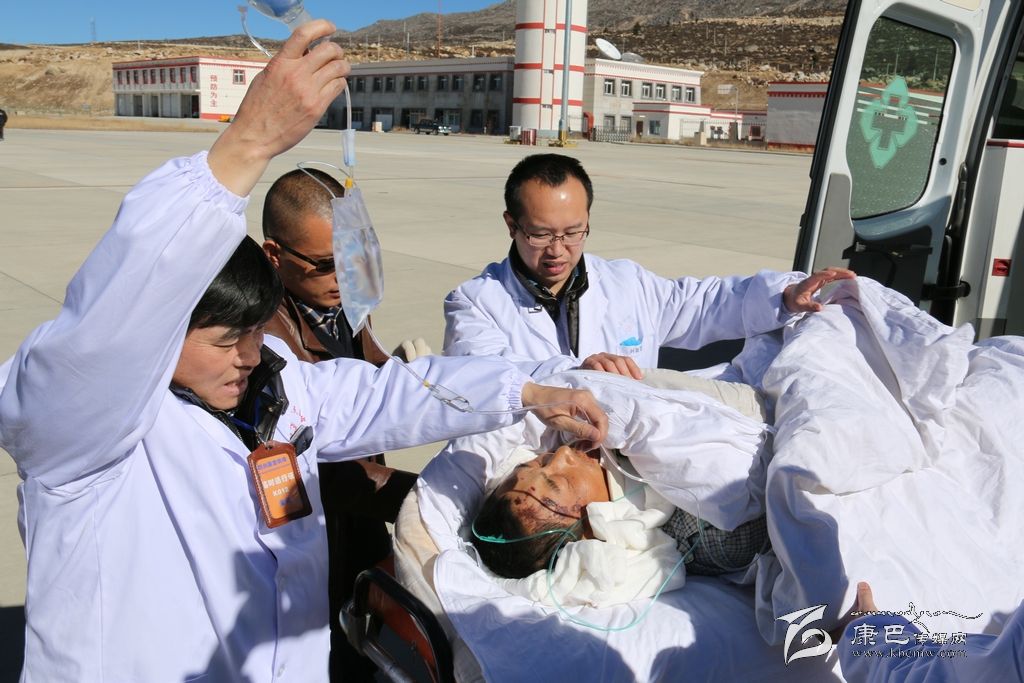 當(dāng)日上午8時(shí)40分,州人民醫(yī)院醫(yī)護(hù)人員對(duì)該名傷員進(jìn)行了轉(zhuǎn)運(yùn)前的最后護(hù)理。隨后,救護(hù)車(chē)在綠色通道疏導(dǎo)下,直奔海拔4238米康定機(jī)場(chǎng),在轉(zhuǎn)運(yùn)的過(guò)程中,考慮到當(dāng)?shù)馗吆0蔚那闆r,救護(hù)車(chē)上安裝了供氧裝置,醫(yī)護(hù)人員全程陪護(hù),將送他到華西醫(yī)院救治。