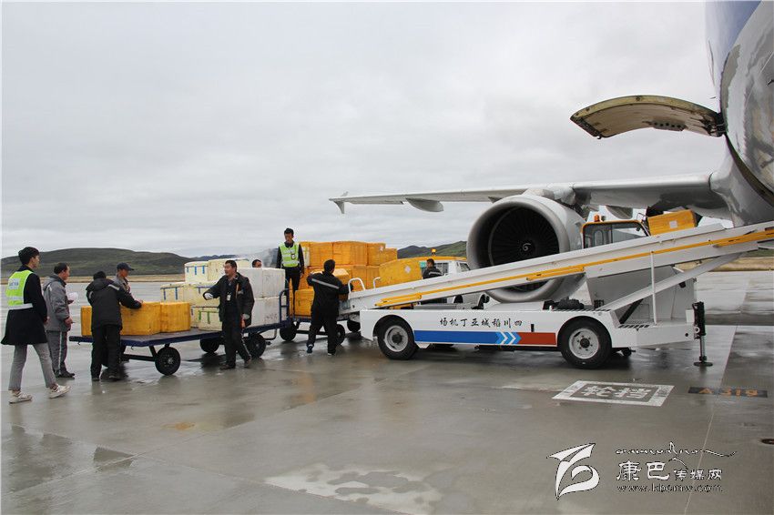 成箱的松茸被運上稻城亞丁機場當天的航班。 康定機場集團公司供圖