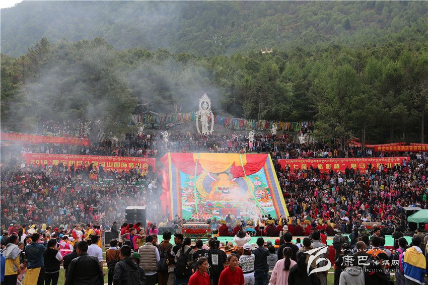 上午九時(shí)許,在陣陣法號(hào)和僧侶的誦經(jīng)聲中,莊嚴(yán)、隆重的“四月八”曬佛儀式拉開了跑馬山國際轉(zhuǎn)山會(huì)系列活動(dòng)的序幕。在人們的熱切期待中,釋迦牟尼的巨型唐卡畫緩緩展現(xiàn)在人們眼前。此時(shí),來自不同省份和地區(qū)以及外國友人,早已將數(shù)碼相機(jī)或手機(jī)準(zhǔn)備好,拍下美好的瞬間。來自河南的游客黃先生說:“能參加到康定‘四月八’轉(zhuǎn)山會(huì),真是太有福了,這是多年的夢想,今天終于實(shí)現(xiàn)了。特別看到這幅釋迦牟尼唐卡像,真是壯觀,很震撼。”同樣,來自英國游客也被濃烈的儀式氣氛所感染,手中的相機(jī)就沒停下過,并用流利中文說:“節(jié)日舉辦得很好,不僅山美、水美,且民族文化底蘊(yùn)無窮,真是太棒了。”