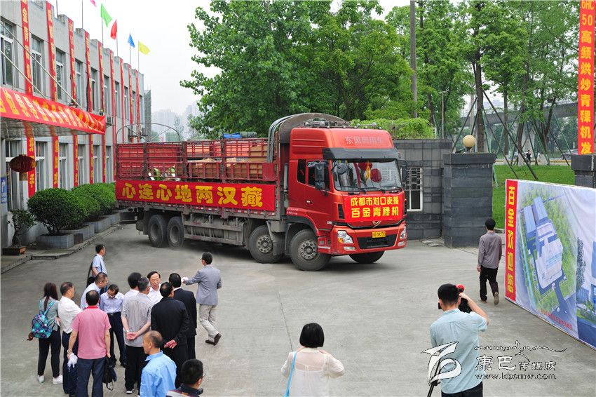 成都市委常委謝瑞武宣布50套全自動(dòng)高頻青稞烘炒機(jī)啟運(yùn)甘孜州。