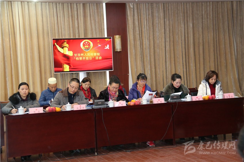 本網訊(記者 宋志勇 文/圖)“依照法律法規(guī)條款做好檢察工作。”“希望積極穩(wěn)妥推進改革,繼續(xù)深化檢務公開,不斷建強檢察隊伍。”“希望觸摸視頻在文字上更加規(guī)范?!薄跋M嵘夹g、培養(yǎng)人才,豐富形式、加強宣傳,建設基層、提檔升級。”“加大生態(tài)和食品關注力度?!边@是12月13日,應邀的20多位州人大代表、政協(xié)委員和人民監(jiān)督員在州檢察院開展的“檢察開放日”活動時,葉萌、魯健康、張建國等人大代表、政協(xié)委員和人民監(jiān)督員相繼提出意見建議。