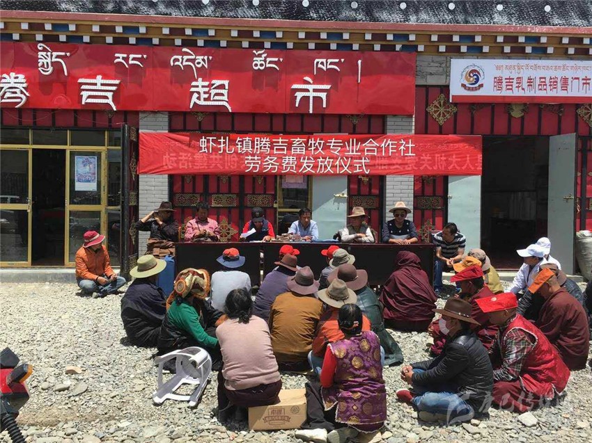 “精準扶貧”貴在“精準”,精確找準“貧困癥結(jié)”,準確“對癥下藥”;由于塔須村惡劣的自然環(huán)境制約,村民們還過著古老傳統(tǒng)的游牧生活,導(dǎo)致塔須村社會、經(jīng)濟、文化發(fā)展相對滯后,全村無集體經(jīng)濟產(chǎn)業(yè),屬于我州貧困村中的“貧中之貧”,以往傳統(tǒng)的扶貧措施猶如“灑胡椒面”,治標不治本;“授人以魚,不如授人以漁”,為讓塔須村能建立村集體產(chǎn)業(yè),村民們能掌握一門致富手藝,州水務(wù)局結(jié)合塔須村實際,多次派遣工作組深入塔須村,了解貧困戶生活現(xiàn)狀、致富愿望,聽取村兩委干部建言,形成專題脫貧報告;鑒于牧民致富愿望強烈,村干部建言獻策,在州水務(wù)局的積極協(xié)調(diào)下,在蝦扎鎮(zhèn)黨委、政府的倡導(dǎo)下,經(jīng)石渠縣人大牽頭,通過州級各聯(lián)系單位、駐村幫扶工作組和村兩委的努力,整合各方人力、物力、財力,團結(jié)協(xié)作,于2016年3月成立了“石渠縣蝦扎騰吉畜牧專業(yè)合作社”,并選舉出9名致富能手為騰吉專業(yè)合作社理事人選。“騰吉合作”乃飛騰吉祥之意,寓意著牧民群眾齊心協(xié)力,共奔小康。