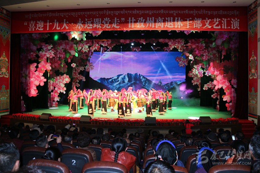 本網(wǎng)訊(記者 宋志勇 文/圖)9月29日,由州委、州政府主辦,州委組織部、州委老干部局、州文體廣新局承辦的“喜迎十九大、永遠(yuǎn)跟黨走”全州離退休干部文藝匯演在康定劇場(chǎng)舉行,旨在謳歌黨在藏區(qū)的豐功偉績(jī),頌揚(yáng)甘孜兒女今天的幸福生活。州級(jí)退休老領(lǐng)導(dǎo)胡克禮、吞珠、寧紹武、便巴傾批、李明璽、何濤、李其福、郭昌平以及州委老干部工作領(lǐng)導(dǎo)小組成員單位領(lǐng)導(dǎo)和相關(guān)部門領(lǐng)導(dǎo)出席并參加活動(dòng)。州委常委、宣傳部長(zhǎng)相洛出席活動(dòng)并致辭,省委老干部局副局長(zhǎng)史可,州人大常委會(huì)副主任白蘇英、州政府副州長(zhǎng)鄭天強(qiáng)、州政協(xié)副主席陳洪暴和特邀嘉賓涼山州委組織部副部長(zhǎng)、老干局局長(zhǎng)楊國敏出席并觀看演出。