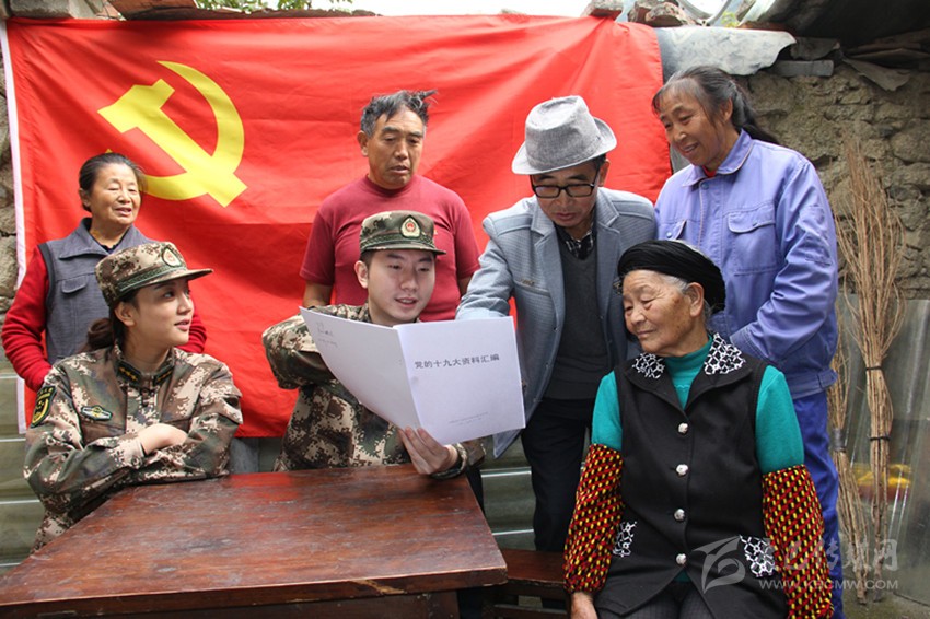 宣傳小分隊來到瀘定縣田壩鄉(xiāng)田壩村崗崗組,給村民送上黨的十九大精神宣傳資料和報刊,與大家拉家常,耐心解讀黨的十九大精神。筆者在現(xiàn)場看到,村民們認真閱讀報紙并聆聽宣傳小分隊的講解。當(dāng)?shù)弥?xí)總書記在報告中提出“增進民生福祉是發(fā)展的根本目的,必須多謀民生之利、多解民生之憂,在發(fā)展中補齊民生短板、促進社會公平正義”時,該村77歲的老黨員李如瓊拉著官兵的手激動地說:“在黨的好政策引領(lǐng)下,我們過好日子的信心更足了?!?/span>