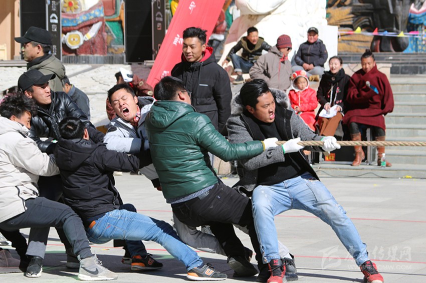 趣味比賽將干部職工和高城鎮(zhèn)農(nóng)牧民群眾分成若干個(gè)小組進(jìn)行比賽,“翻山越嶺 ”游戲,男生普遍輕松應(yīng)對(duì),女生由于沒有助跑,一直栽在“山坡上”翻不過(guò)去,引得現(xiàn)場(chǎng)觀眾大笑,最后在現(xiàn)場(chǎng)觀眾的齊聲加油下終于翻過(guò)。跳繩、袋鼠跳,參賽選手較勁比拼?!坝赂艺摺庇螒颍M員需先轉(zhuǎn)10個(gè)呼啦圈、踢毽10下、吹爆一個(gè)氣球、跳繩10下、喝完一瓶330毫升的礦泉水進(jìn)行接力,現(xiàn)場(chǎng)氣氛熱烈,觀眾的加油吶喊聲此起彼伏。“坦克大戰(zhàn)”游戲考驗(yàn)了大家協(xié)調(diào)配合能力,把觀眾的心都提到嗓子眼。最引人注目的拔河比賽開始了,每個(gè)隊(duì)都帶著勢(shì)在必得的勇氣上場(chǎng),結(jié)果年輕小伙們卻輸給了高城鎮(zhèn)農(nóng)牧民代表隊(duì)。