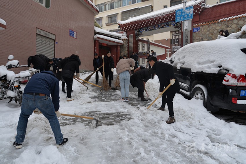 圖為州政協(xié)機(jī)關(guān)干部職工正在清掃積雪。