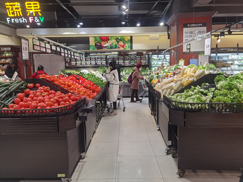 “我們比較喜歡直接來超市,想要買什么可以一站搞定。有什么問題還可以直接找售后,既方便又安心?!庇媱澚粼诳刀ň偷剡^節(jié)的市民王女士12月29日下午下班后來到超市“大采購”,在她看來,直接到超市省事又省心。