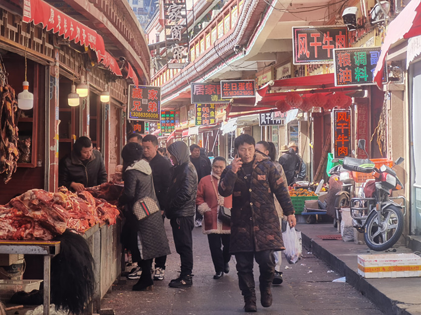 康定市高師放心鮮肉鋪的高老板這幾天尤為忙碌,每天早上四五點就要起床去備貨,六點過趕到市場開門營業(yè),一直要忙到下午六七點。他告訴記者,臨近年關,市場逐漸熱鬧起來,人流量明顯增多。特別是豬肉市場,不少市民大量購買鮮豬肉制作臘肉香腸,為過年做準備。