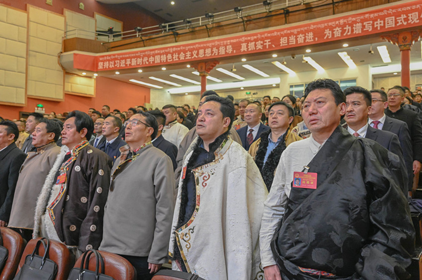 15時(shí)30分,大會(huì)主席團(tuán)常務(wù)主席、執(zhí)行主席舒大春宣布甘孜藏族自治州第十三屆人民代表大會(huì)第三次會(huì)議開幕,會(huì)場全體起立,奏唱《中華人民共和國國歌》。