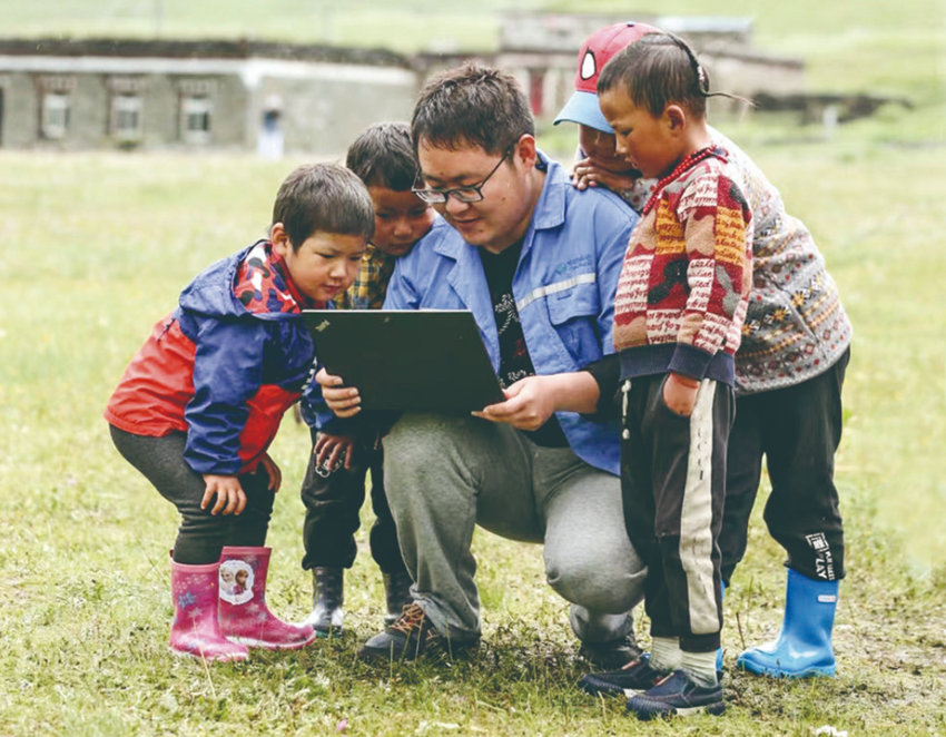 高原農(nóng)牧區(qū)的孩童“觸網(wǎng)”看到外面的世界。