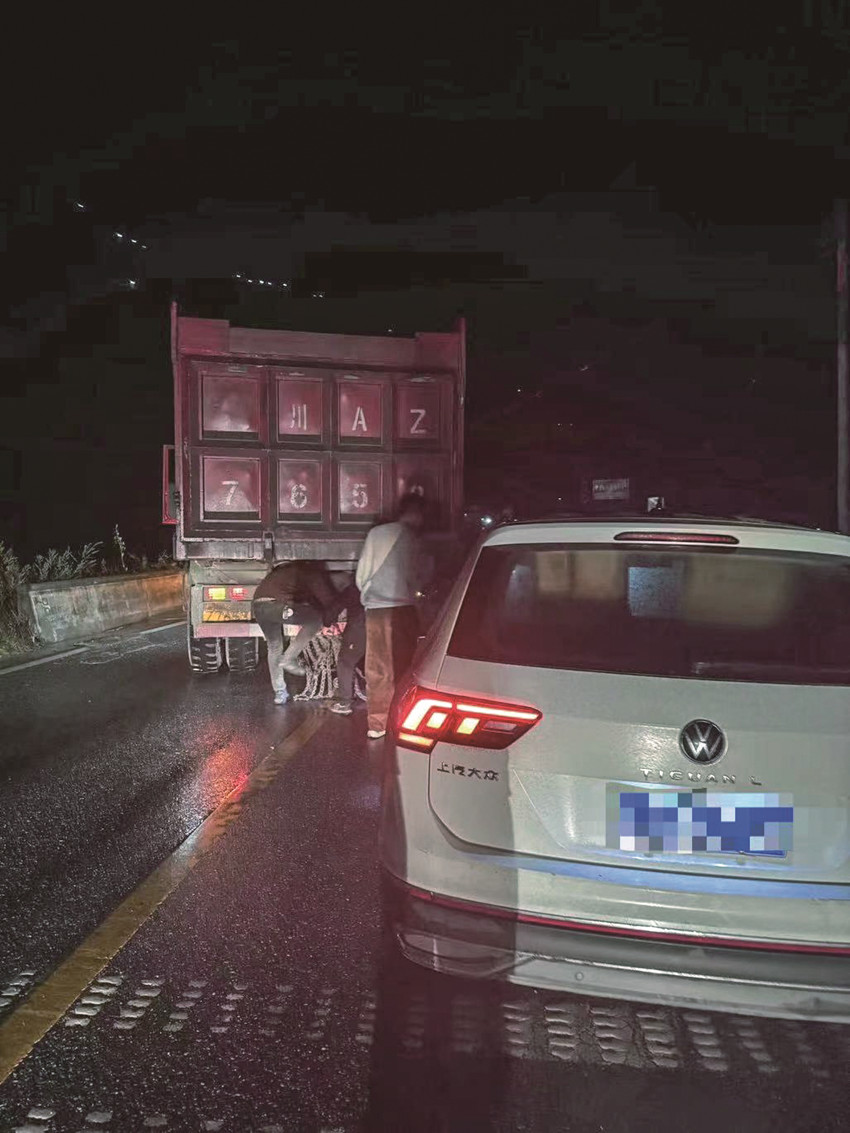 “那天我們到巴塘已經(jīng)是晚上了,突然發(fā)生的意外讓我們都慌了神……”據(jù)杜先生回憶,10月5日當(dāng)天,杜先生和家人從康定自駕到巴塘,沿途的旖旎風(fēng)光如同畫卷般徐徐展開(kāi),讓杜先生一行沉醉其中。然而,當(dāng)他們的車輛緩緩駛至列衣隧道通往巴塘方向的出口時(shí),由于夜色已深,大雨滂沱,視線因此變得異常模糊。在這樣的環(huán)境下,盡管杜先生駕駛得小心翼翼,但車輛還是發(fā)生了打滑。伴隨著“咚”的一聲沉悶的聲響和劇烈的晃動(dòng),車輛的右側(cè)前后兩輪滑入了路邊的排水溝渠之中,瞬間將他們的旅程陷入了困境。