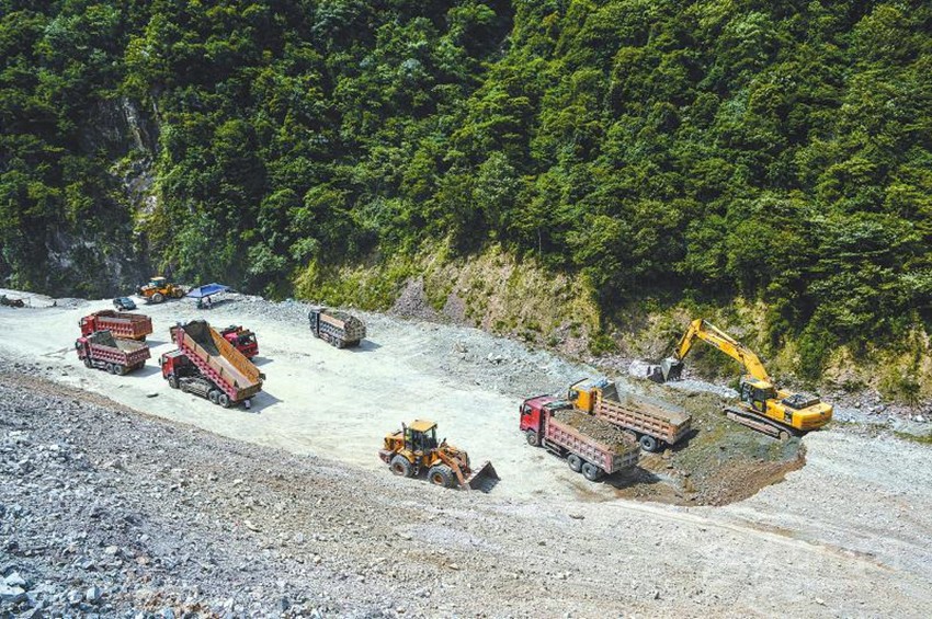 溯流而上,沿國道318線往西,在建的雅康高速不時(shí)映入眼簾,幾個(gè)巨型的渣土堆放體或覆蓋薄膜或已植草興綠,不時(shí)有裝載渣土的貨車迎面駛過。