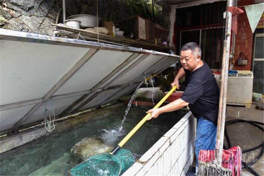 在各方幫扶下,2015年,朱國(guó)富借了10多萬(wàn)元,在家門口開起了“黑灣魚莊”。農(nóng)家樂(lè)開起來(lái)了,日子又開始紅火起來(lái)。